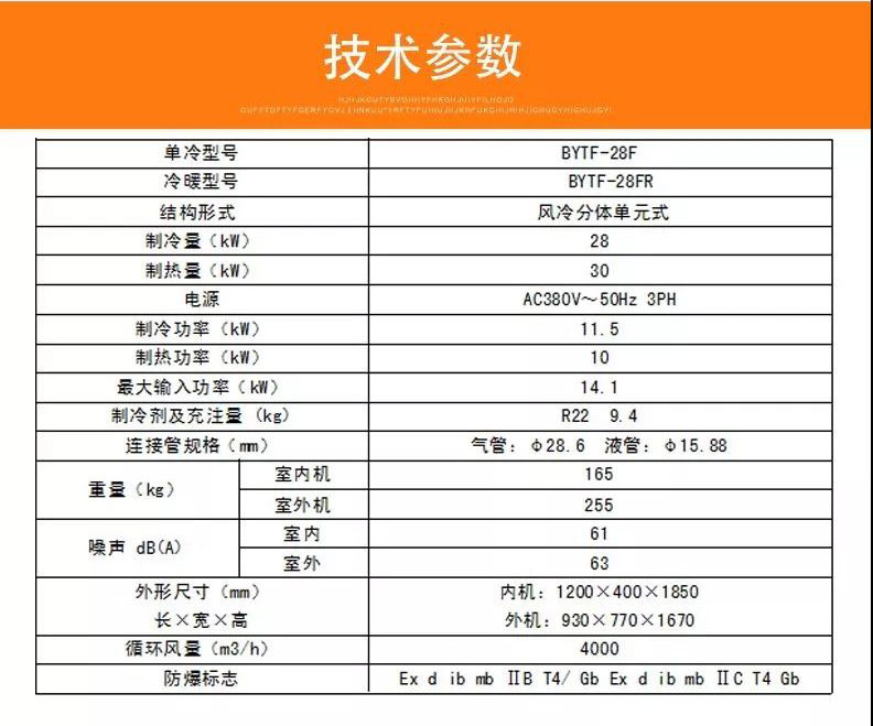 防爆空調機(分體柜式)具有強勁制冷、制熱、通風、除塵、除濕功能,廣泛應用于存在或可能存在IIA、IIB、 IIC類,T1~T4組可燃性氣體、蒸氣與空氣混合形成的爆炸性危險場所,多用于石 油、鉆采、化工、化學分析、制藥、危險品倉儲等易燃易爆行業等。